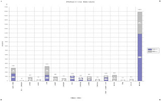 世に言う「生駒家家臣出入ノ一件」を分析したグラフである。五百石以上の上士層では、半数以上の給人が 生駒家に見切りをつけ、立ち退いたことが分かる。石崎若狭組の結束が目を引く。